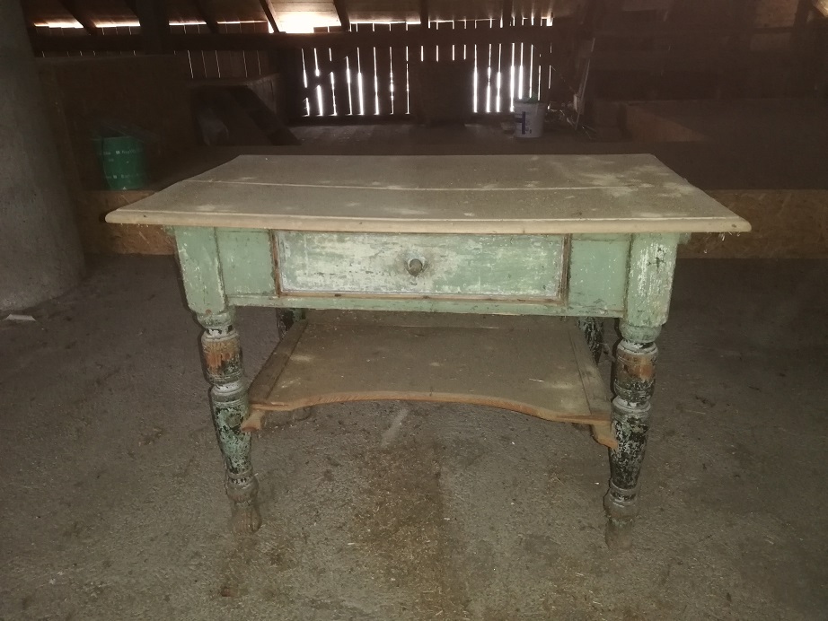 So wurde z.B. ein alter Holztisch (und seine vielen Holzwürmer :-) zum Blickfang im Flur des Haupthauses.