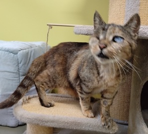 Sie ist in der "Handicap-WG" untergebracht bei dem einäugigen und fast tauben Jacky und der fast blinden Asthma-Katze Bella.